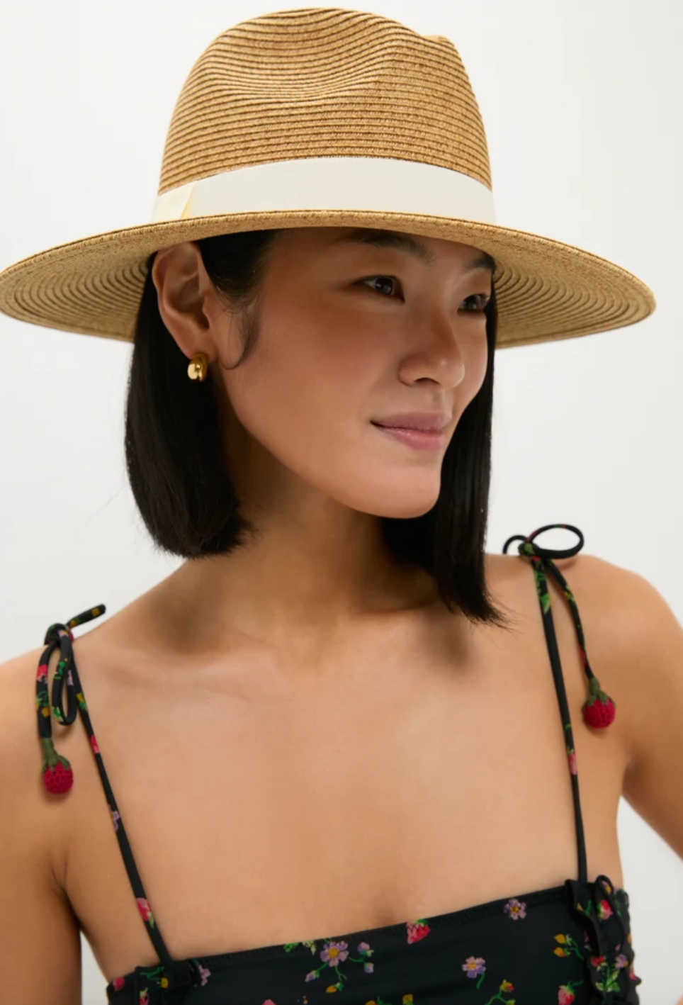 The hat folds easily into a suitcase or tote and regains its shape with minimal effort. Its structured crown adds a touch of refinement, making it an easy match for both casual swimsuits and dressier summer outfits.